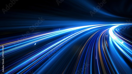 Abstract Blue and White Light Trails on a Curved Road at Night