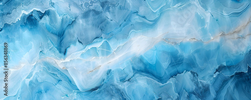Abstract blue and white marble texture with fluid wave patterns, creates a calming and elegant atmosphere. Ideal for backgrounds, banners, and design with copy space.
