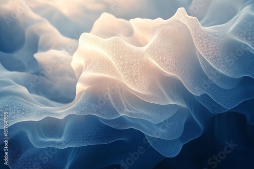 Abstract blue and white texture flowing gracefully in waves, evoking a sense of calm and tranquility