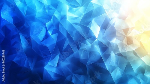 Abstract blue and yellow geometric pattern with varying shades created by light reflections in a digital design