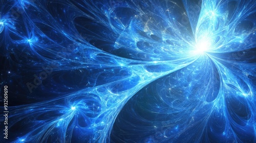 Abstract blue background featuring a fractal star explosion with glossy accents and intricate lines in a stunning illustration
