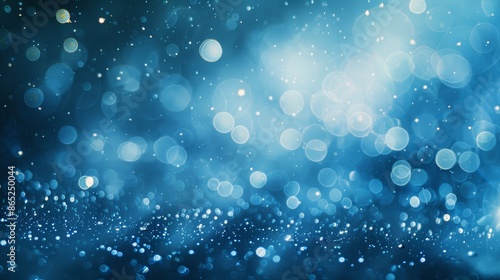 Abstract blue background with bokeh lights, perfect for holiday or winter themes.