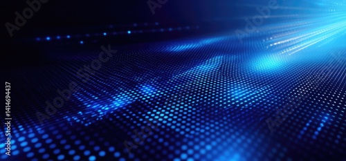 Abstract blue background with pattern of dots, illuminated texture and light rays