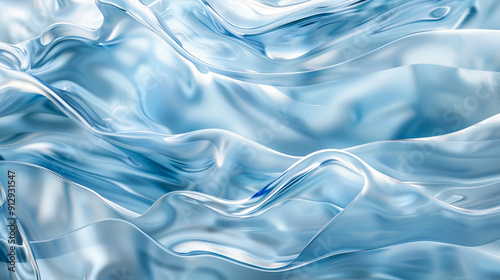 Abstract blue background with waves liquid glass or water surface with ripples and splashes Trendy glassmorphism design 3D render