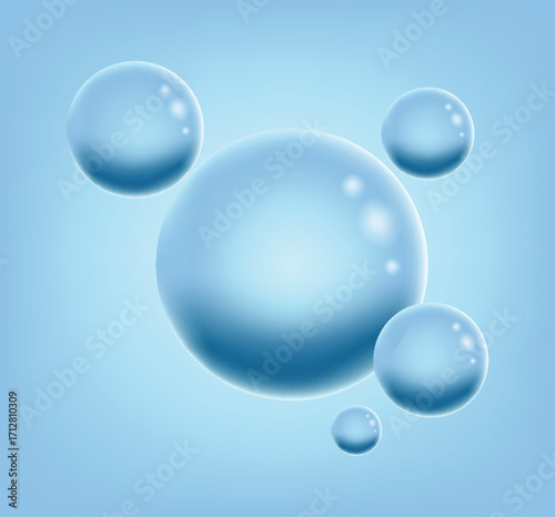 Abstract blue bubbles background featuring glossy, shiny spheres. A modern vector design perfect for posters, digital art, presentations, and creative branding projects.