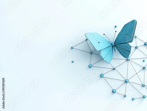 Abstract blue butterfly design on a white isolated background.