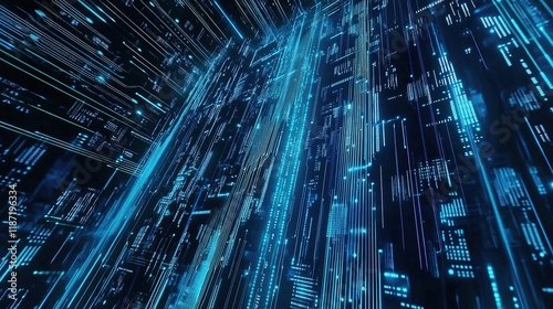 Abstract Blue Circuit Lines in Vector Design with Digital Elements