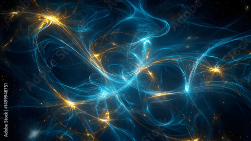 Abstract Blue Digital Wave with Particle Network and Light Effects