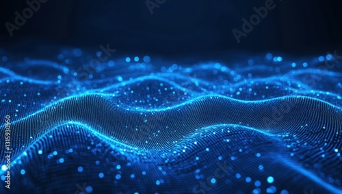 Abstract Blue Digital Waveform: A mesmerizing digital art piece showcasing a dynamic blue waveform, evoking feelings of serenity and technological advancement.