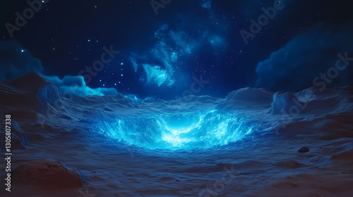 Abstract blue energy vortex with glowing light in dark space. Surreal - Desert. Illustration