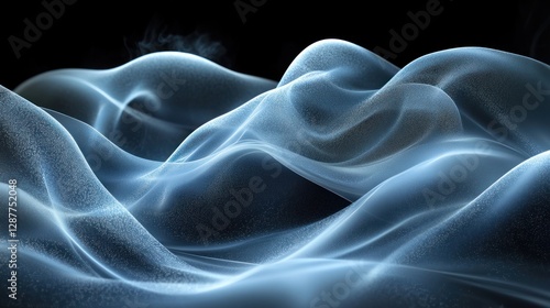 Abstract blue flowing shapes on black background