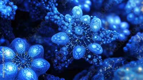 Abstract Blue Fractal Flowers: A Digital Art Piece
