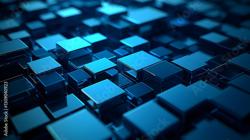 Abstract Blue Geometric Cubes Displaying Digital Technology Connections with Focus on Front Objects