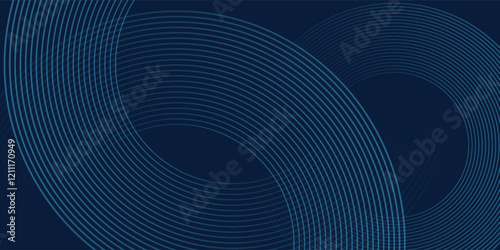 Abstract blue geometric lines glowing on dark blue background. Modern shiny blue circle lines pattern. Futuristic technology concept. Suitable for covers, posters,