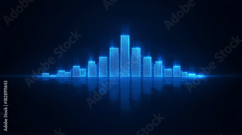 Abstract Blue Glowing Cityscape Silhouette with Reflections for Futuristic and Modern Concepts