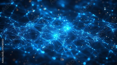 Abstract blue glowing digital grid background with shining connections and dots. Digital technology, futuristic network concept, big data visualization.