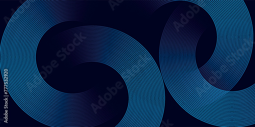 Abstract blue glowing geometric lines on dark blue background. Modern shiny blue circle lines pattern. Futuristic technology concept