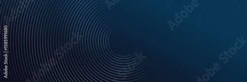 Abstract blue glowing geometric lines on dark blue background. Modern shiny blue circle lines pattern. Futuristic technology concept. Suit for cover, poster, banner, header, website.