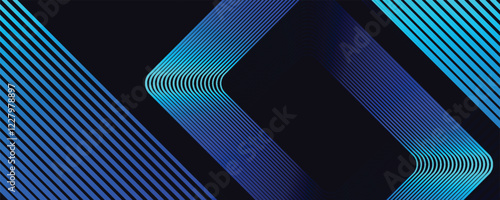 Abstract blue glowing geometric lines on dark blue background. Modern shiny blue square lines pattern.
