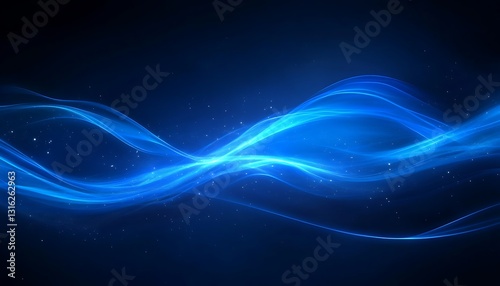 Abstract blue glowing wave on dark background.