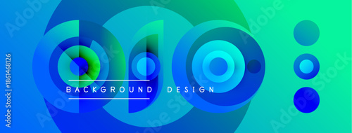 Abstract blue green gradient circles. Text reads background design. Modern visual element, vibrant colors, smooth transitions.