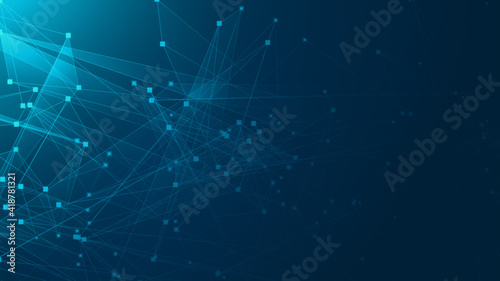 Abstract blue green polygon tech network with connect technology background. Abstract dots and lines texture background. 3d rendering.