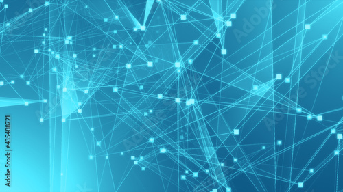 Abstract blue green polygon tech network with connect technology background. Abstract dots and lines texture background. 3d rendering.