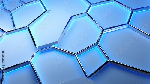 Abstract blue hexagon pattern background with 3D geometric shapes. Technology, design, and futuristic concept.