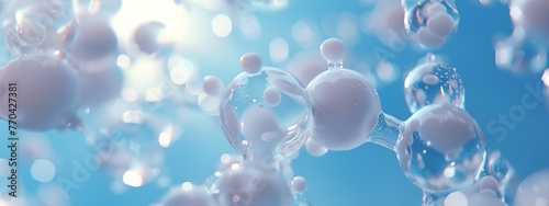 Abstract blue horizontal banner background with molecules. The model of the molecule.