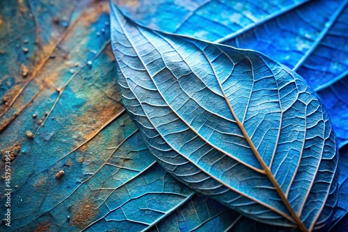 Abstract Blue Leaf Painting - Close-up Texture, Documentary Photography Style