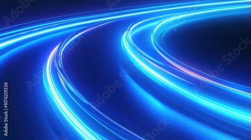 Abstract blue light trails create a dynamic and futuristic visual, conveying movement and energy.