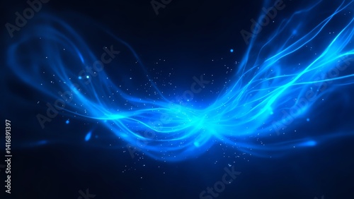 Abstract blue light waves swirling in darkness.