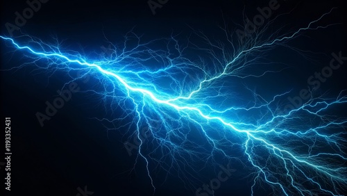 Abstract Blue Lightning Bolt Digital Art Energy, Power, Dark Background electricity,plasma