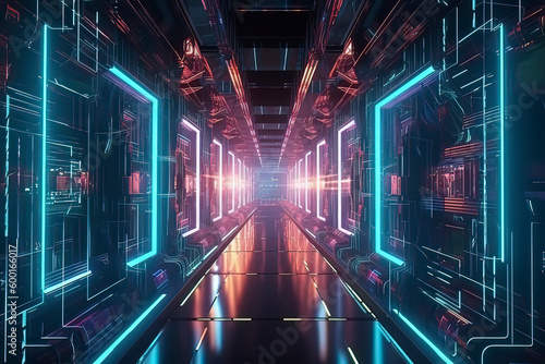 Abstract Blue Luminous Technology Space. AI technology generated image