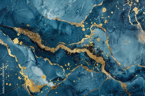 Abstract Blue Marble Texture with Luxurious Gold Accents