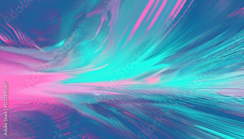 Abstract blue, mint, and pink background with interlaced digital glitch and distortion effect