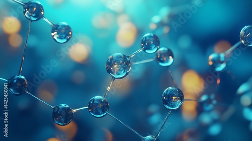 Abstract blue molecular structure science background image 3d art atoms light shiny glass design