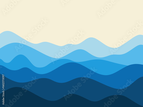 Abstract Blue Mountains Vector Landscape Background with Gradient Layers and Serene Sky for Modern Design Projects