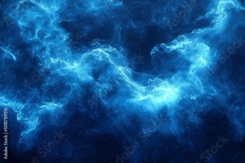 Abstract Blue Nebula with White Glowing Veins and Stars