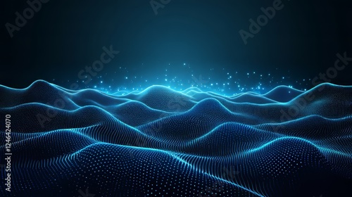 Abstract Blue Network Landscape connected dots, glowing lines, futuristic design, dark background