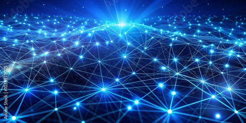 Abstract Blue Network Landscape, Digital Network, Technology, Data