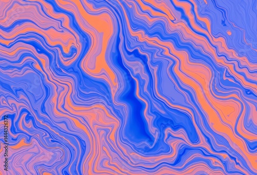 Abstract blue orange marbled art background Fluid acrylic paint, liquid swirls, texture, colorful
