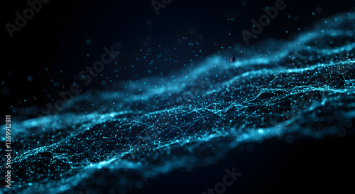 Abstract Blue Particle Wave: Digital Ocean Depth