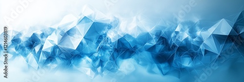 Abstract blue polygonal background forming a landscape with mountains and clouds