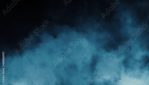 Abstract blue smoke misty fog on isolated black background. Texture overlays. Paranormal mystic smoke, clouds for movie scenes.