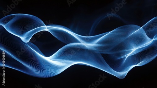 Abstract blue smoke waves on black background.