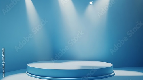 Abstract Blue Stage with Spotlights: Minimalist 3D Render