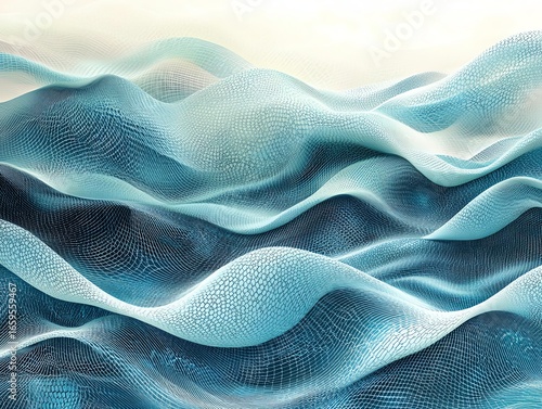 Abstract Blue Wave Pattern on White Background with Mesh Texture