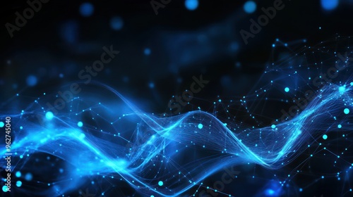 Abstract Blue Wave with Glowing Lights and Connected Lines