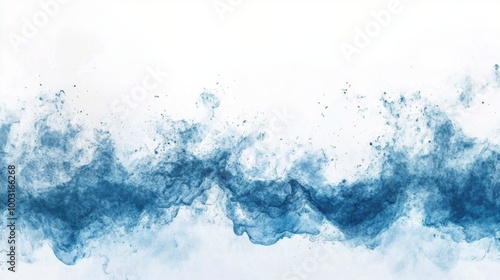 Abstract blue waves created with watercolor technique on a white background representing calmness